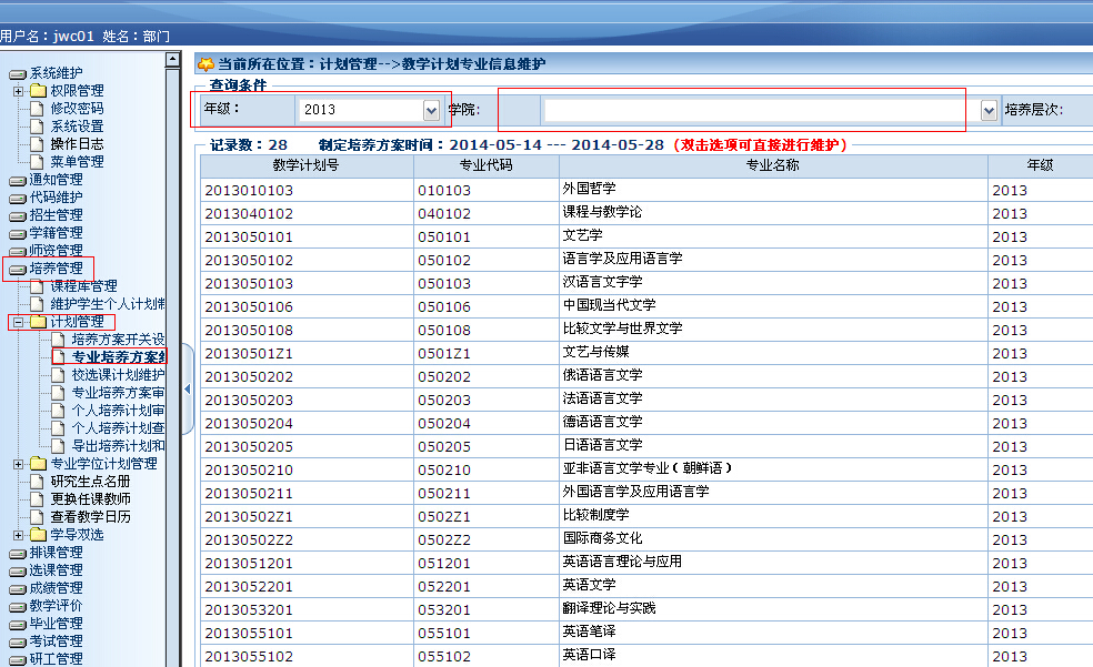 在系统中落实拟开课程