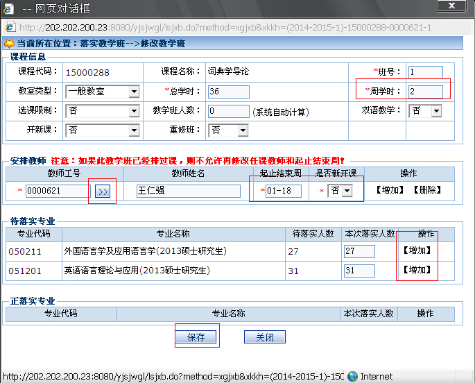 排课管理----专业排课----教学任务落实