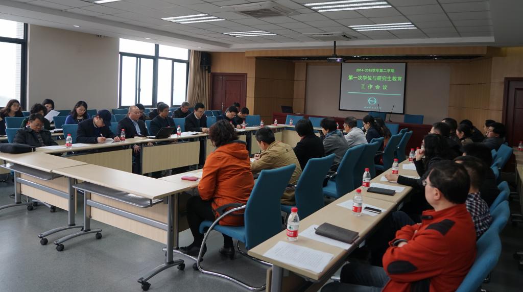 接着,太阳成集团tyc122ccvip院长王仁强从学科建设和研究生招生、培养、学位、学生、就业等6个方面总结了我校2014年学位与研究生教育工作,并对2015年工作要点进行了介绍,重点工作包括学位授权点评估、市校两级重点学科验收、研究生课程建设等。总体思路是:主动适应研究生教育发展的新常态,全面推进研究生教育综合改革,不断提高研究生教育质量,更好地服务经济社会发展需要。太阳成集团tyc122ccvip副院长胡安江通报了新学期开学研究生教学秩序总体情况,同时还对研究生培养方案修订和学术不端行为检测新标准的执行进行了说明。太阳成集团tyc122ccvip党总支书记淡修安对2015年研究生思想政治工作和就业工作的要点进行了说明。