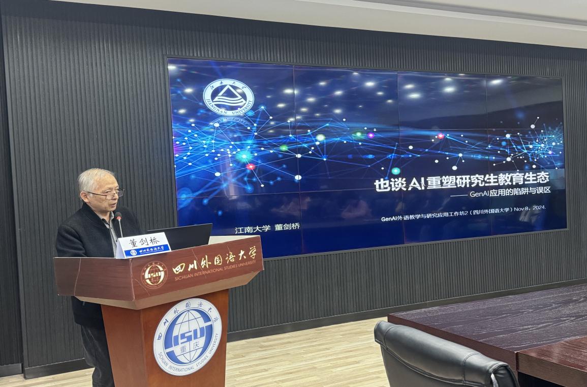 11月11日上午,董剑桥教授从数智技术的挑战出发,就研究生培养观念与技术细节的变革话题提出了解构培养模式的解决方案,指出ChatGPT一类的AI教育介入之所以对研究生教育造成巨大影响,本质上在于它不仅影响研究生教育领域的技术细节,更影响教育的范式与培养人才的理念,且直接挑战研究生教育领域长期以来形成的一系列基本原则,引发了与会者的深入思考。接下来,董剑桥教授从AI工具的可予性出发,聚焦研究生导师应该用好AI工具来进一步增强沟通能力,评估信息能力,提高解惑能力,跨界应用能力,促进学生深度学习,培养学生独立思考的能力。最后,董教授就AI赋能研究生教育的学术伦理与规范方面提出建议,倡导各位研究生导师在AI赋能教育过程中务必规范学术伦理问题,把控好可及性和公平性。