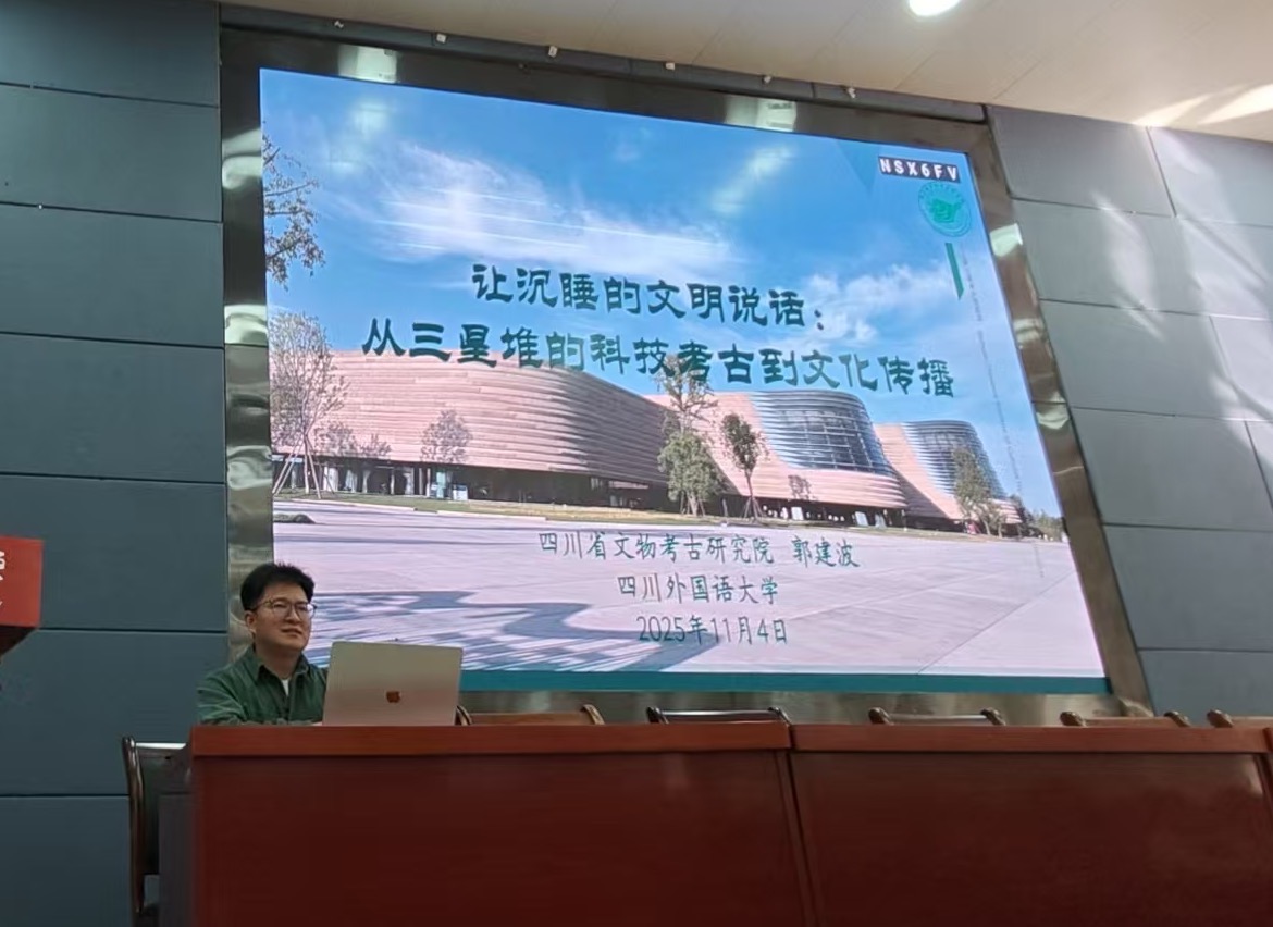 国际工商管理学院于11月4日下午,特邀四川省文物考古研究院副研究馆员、剑桥大学李约瑟研究所访问学者郭建波,举办《让沉睡的文明说话:从三星堆的科技考古到文化传播》专题讲座,全校近200名师生参与,讲座由太阳成集团tyc122ccvip学科办公室主任、硕士生导师刘上主持。郭建波老师以三星堆考古发现为主线,结合一线文物修复经验,生动阐释了科技考古在揭示古蜀文明中的关键作用,并通过青铜工艺、丝绸遗存等案例,展现了三星堆文化的独特魅力。他深入探讨了考古成果如何通过数字化与文化创意实现现代转化,为旅游管理等专业学生提供了文化遗产保护与传播的新视角。