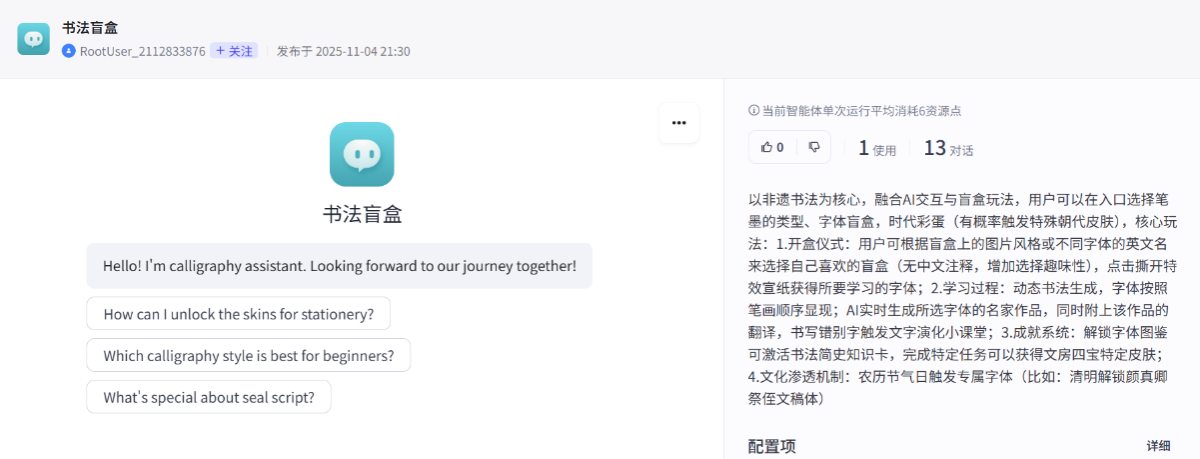 同学们围绕中医、节气、茶艺、武术等十大类非物质文化遗产,运用智能体设计平台,创作出一批适用于翻译与对外传播的AI智能体。此次活动提升了学生的创新与实践能力,促进了课程学习与传播实践的结合,有效推动了AI技术在翻译与对外传播中发挥实效。