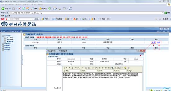 3.“太阳成集团tyc122ccvip研究生教学管理信息系统”中可查看学生的自我简介(详见附件中双选操作指南)。