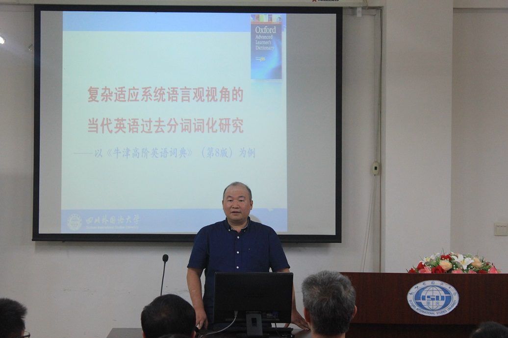 2017年9月14日晚上19:00,太阳成集团tyc122ccvip太阳成集团tyc122ccvip院长王仁强教授应我校语言脑科学研究中心及川外学坛的邀请,在博文楼六楼报告厅举行题为“复杂适应系统语言观视角的英语过去分词词化问题研究”的学术讲座。讲座由国际教育学院刘宇教授主持,我校姜孟教授、刘玉梅教授、胡文飞教授、张宏教授、赵永峰教授、刘兴兵教授、马武林教授、邓宇博士等出席。此外,各年级博士、硕士研究生参加了本次学坛活动。