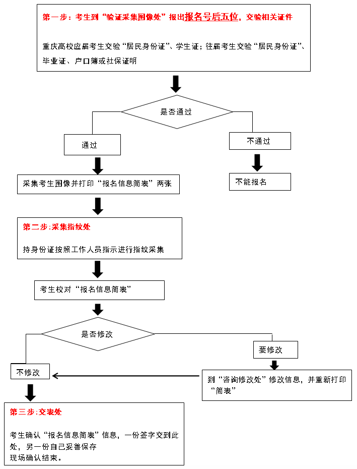 1、考生必须按要求完成现场确认全部步骤,经考生确认的报名信息在考试、复试及录取阶段一律不作修改,因考生报名信息填写错误引起的一切后果由考生本人自行承担。