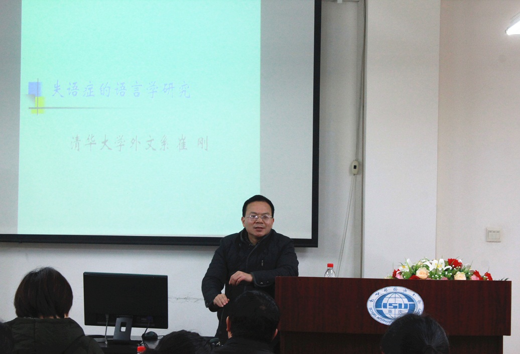 2016年12月10日下午16:00,应我校语言脑科学研究中心及川外学坛的邀请,清华大学外文系语言、心理与认知学科群负责人、语言与心理研究中心主任崔刚教授在博文楼六楼报告厅举行题为“失语症的语言学研究”的学术讲座。讲座由姜孟教授主持,我校部分青年教师、博士生及硕士生参加了本次学坛活动。