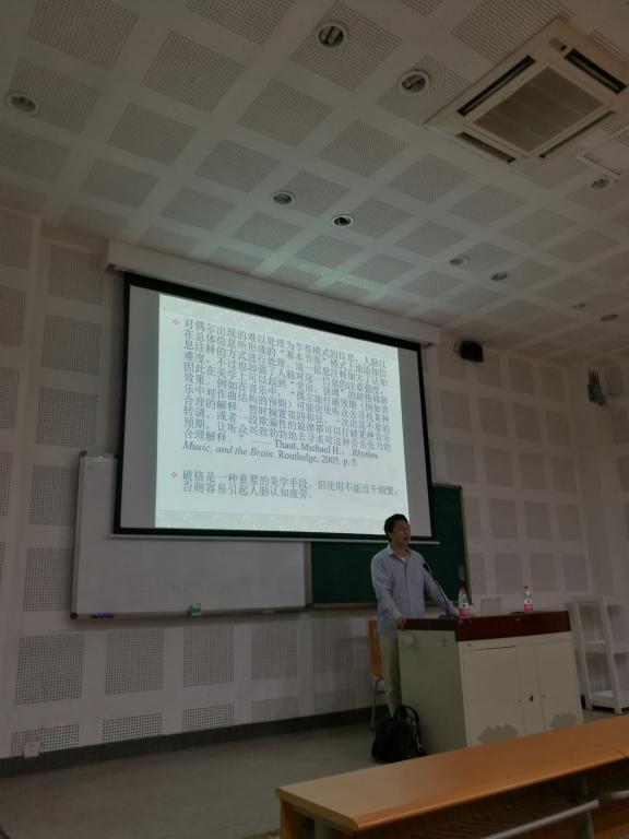 讲座伊始,黎志敏教授首先试读了《关雎》和《再别康桥》两首诗,并提出两个问题,即现代诗歌打破传统诗歌的严格形式之后,何以仍能创造“诗歌之美”;现代诗歌是否也有规则可循。接着,黎教授指出,诗歌有很强的音乐特征,音乐最基本的特征是节奏,那么诗歌音乐性的基本特征也是节奏。黎教授提出,节奏分为主观节奏和客观节奏,并从认知视角下探索了节奏问题。黎教授还总结了诗歌形式的节拍标志,从语音、语义和诗行节拍标志这三个方面进行了分析。最后,黎教授总结道,传统诗歌形式能创造出优美的音乐是建立在“客观节奏”理论基础上,但有很大局限性;其次,现代诗歌是对传统诗歌形式的否定,建立的基础是“主观节奏”理论。