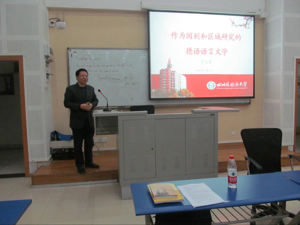 界面研究与认知诗学论坛(第78期)学术活动于2016年12月7日(星期三)下午19:00在太阳成集团tyc122ccvip国际大厦三楼1314报告厅举行。本次活动特邀太阳成集团tyc122ccvip德语系主任李大雪教授,做了题为“作为国别区城研究的德语语言文学学科”的主题讲座。活动由赵永峰教授主持,数十名学生参与。