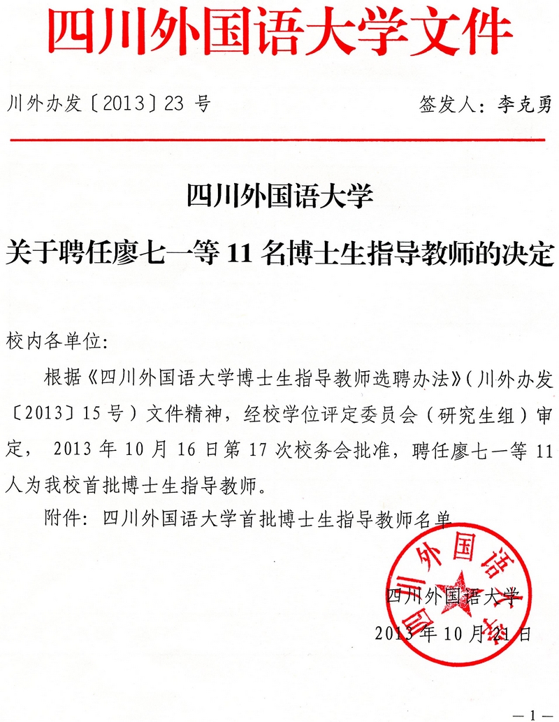 我校聘任11名博士生指导教师