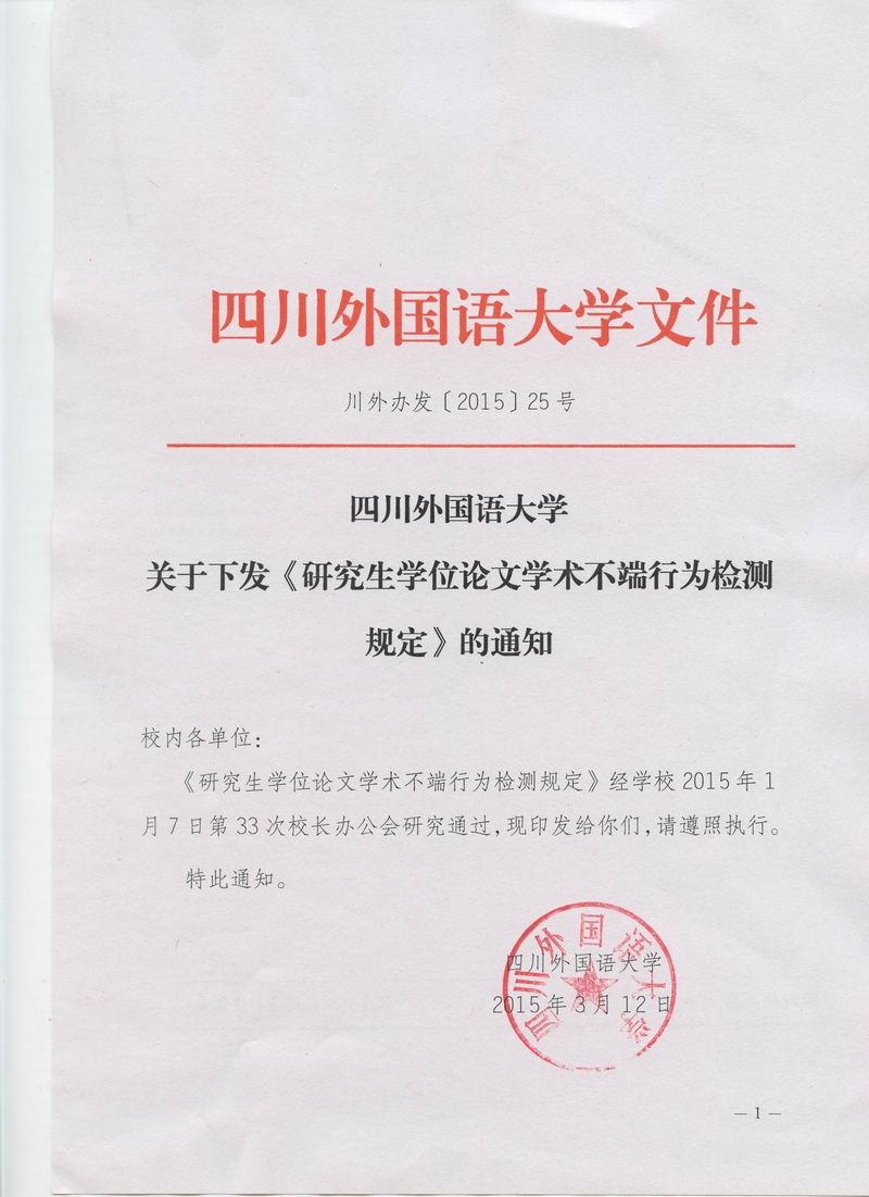 七、本规定自公布之日起实施,原《四川外语学院关于研究生学位论文学术不端行为检测暂行规定》(川外办〔2011〕17号)同时废止。