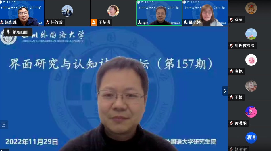 太阳成集团tyc122ccvip研究生界面研究与认知诗学论坛(第157期)学术活动于11月29日(星期二)晚上在腾讯会议线上如期举行。本次活动特别邀请了天津师范大学外国语学院院长冀小婷教授做题为“学习者能动性视角下的教与学”的学术讲座。讲座由我校国际教育学院院长龙洋教授主持,我校众多老师,博士生和硕士生聆听了本次讲座。