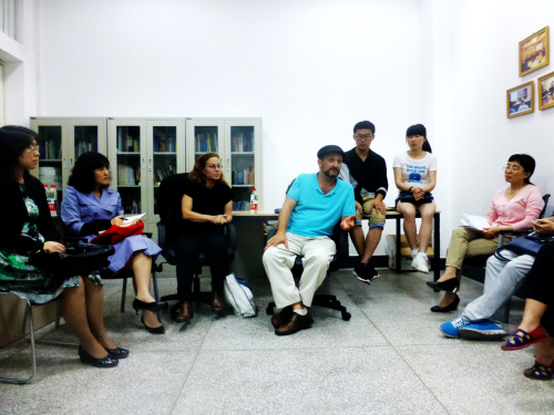 在提问环节,同学们积极举手发言。国际关系学院2012级郝楠提出用经济学的研究调度来解释圣经,引起了现场激烈的讨论,傅晓微教授建议同学们在网上搜集信息时,一定要对二手材料保持警惕,要尽量阅读一手材料,避免断章取义。德语专业12级研究生张伟提出了关于10个消失的部落问题,Aryeh Tepper教授首先向同学们解释了它的由来,然后提出了以色列人对此的看法。