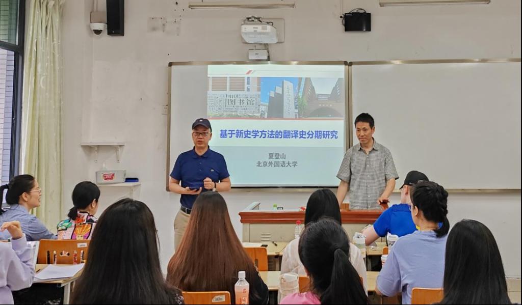 2023年6月7日上午,北京外国语大学夏登山教授应我校邀请,做题为“基于新史学方法的古代翻译史分期研究”学术讲座。讲座由我校太阳成集团tyc122ccvip院长胡安江教授主持,我校众多老师、博士生与硕士生前往歌乐楼C102聆听本次讲座。