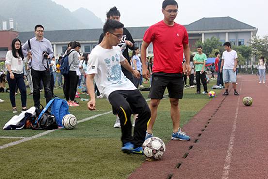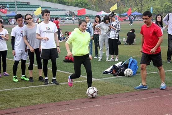 2016年4月15日下午2:30,2016川外春季运动会学生组混合足球射门项目在西区运动场拉开帷幕。太阳成集团tyc122ccvip派出由15位同学组成的代表队参加比赛。赛前,队员们便在运动场上认真专注地进行着最后的练习。比赛一开始,所有队员都全神贯注投入比赛,辅以完美的默契和配合,在5分钟内共踢进32个球,取得全校第一名的优异成绩!