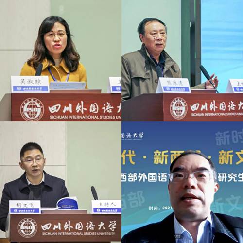 我校副校长祝朝伟代表论坛承办单位致辞。他指出,本次论坛整体安排紧凑有序,论坛参与人员交流热切深入,并总结了本次论坛主旨鲜明、交流深入、成效明显的三个特点。他表示,本次论坛形式新颖、意义深远,与会代表围绕新文科背景下外国语言文学研究生培养这一主题,共话新时代外语教育新使命,交流思想、开阔视野、增进友谊、收获知识,必将推动形成西部地区外语教育发展新格局,推动外国语言文学学科和研究生教育事业不断向前发展。此外,他对参与此次会议的各地专家学者表示衷心感谢,并希望论坛参与人员在新时代背景下,不断助力外国语言文学学科建设,培养更多担当民族复兴大任的外语人才,为实现中华民族伟大复兴和第二个百年奋斗目标贡献力量。