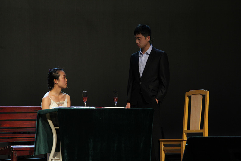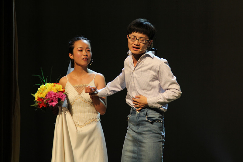 我院选送的节目是由杨越、詹梦颖、沈戟、李帅帅、孙雪婷主演的《驯悍记》。该剧由莎士比亚的同名幽默喜剧改编而来,剧情为一位聪明的彼得鲁乔先生娶了漂亮的富家女凯瑟丽娜,但这对夫妻从结婚起就吵闹不休。凯瑟丽娜脾气暴躁、骄横无理,不把自己的丈夫放在眼里。彼得鲁乔也不甘示弱,他运用巧妙的计策,最终成功地将骄横的妻子改造成温柔的贤内助。演员们巧妙运用了反串的表演技巧,将这部生活气息浓郁的故事表演得生动有趣、诙谐幽默,同时把人物鲜明的性格表现得淋漓尽致。台词和情节也极具感染力,赢得观众们一阵阵热烈的掌声和欢呼声。