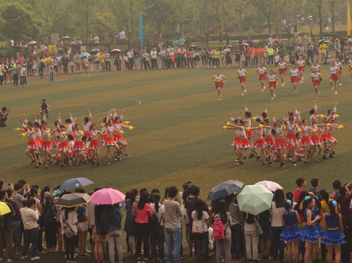 2015年4月27日上午9时15分,川外春季运动会开幕式之后,学生组排舞决赛作为首日第一项赛事,也是历年运动会上最吸引人眼球的项目,紧锣密鼓的登场了。研院排舞团队作为十五个晋级团队之一,将和其他院系队伍在歌乐山腰共同演绎一场空前绝后的视觉盛宴。凭借Lovey Dovey和Electric Shock舞曲串烧灵动的旋律和排舞队员们曼妙的舞姿,研院排舞队获得了三等奖。在一个多月里,队员们抽出自己宝贵的时间,无论风雨,坚持进行训练,才取得了如此优秀的成绩,感谢她们的付出。祝贺她们旗开得胜,为研院在春季运动会上先下一城!
