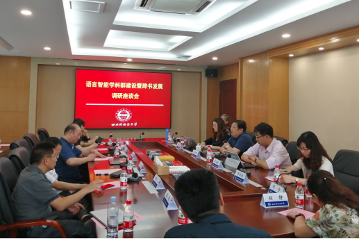 我校语言智能学院执行院长姜孟教授汇报了我校语言智能学科群建设情况,词典学研究所所长王仁强教授汇报了我校词典学学科建设情况。