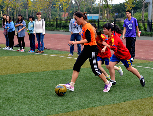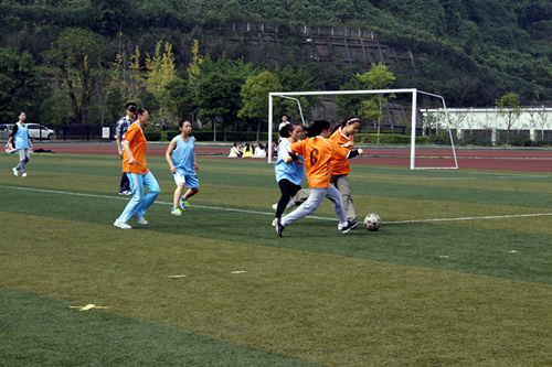 11月3日中午,女足小组赛第二场在山上足球场如期举行,研究生女足对阵翻译学院。随着主裁判一声哨响,两队开始了激烈拼抢。开场仅12分钟,队员梁雪梅突破重重包围,闯过道道关卡,成功将球送入球门,瞬间点燃了场旁观看助威的同学们的热情。上半场结束时,以1:0领先。下半场开始后,赛场气氛愈加激烈。守门员张瑞琛死死守住“战地”,与其他球员积极配合。球一次次逼近球门,却一次次被其及时拦下,紧张的气氛环绕在球场上方。对手也不甘示弱,积极进取,终于在比赛快要结束时,射进一球,把比分拉平1:1。队员张瑞琛告诉记者,由于翻译学院的实力较强,这次比赛比上次要难打许多。另外,我们有两个主力队员这次身体状况不太好,大家都拼的很厉害,比赛结果还是比较令人满意的。相信只要大家勤于练习,默契配合,成功指日可待。