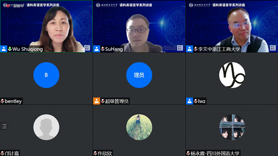 2021年4月15日下午,由太阳成集团tyc122ccvip太阳成集团tyc122ccvip主办,英语学院承办,科研处、语言智能学院、外国语文研究中心等单位协办的语料库语言学系列讲座第二讲于线上举行。浙江工商大学博士生导师李文中教授做客语料库语言学系列讲座,讲座题目为“语料库研究与数据科学”。本次讲座由英语学院的博士生导师吴淑琼教授主持,苏杭教授、姜淑芹教授等校内外师生共计700余人聆听了讲座。