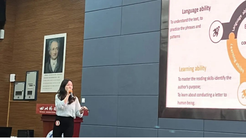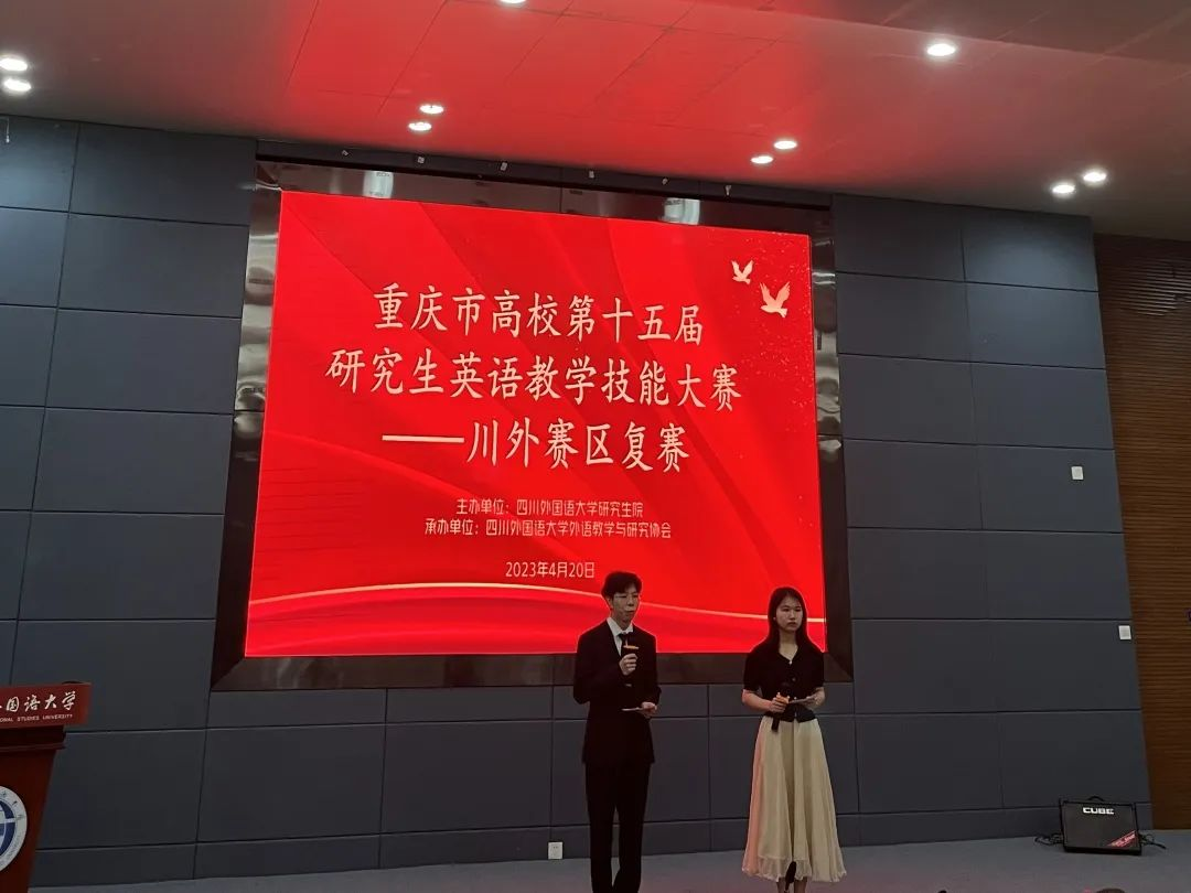 重庆市高校第十五届研究生英语教学技能大赛川外赛区复赛于2023年4月20日晚上19:00在我校西区歌乐楼A栋报告厅成功举行。此次比赛由太阳成集团tyc122ccvip太阳成集团tyc122ccvip主办、太阳成集团tyc122ccvip外语教学与研究协会承办。出席本次比赛的评委老师有:刘忠政老师、马平老师以及杜华老师(从左至右)。