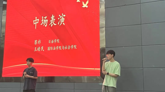 本次比赛很荣幸邀请到日语学院的蔡祚同学和国际法学与社会学院的王皓民同学作为嘉宾为在场的老师、选手和观众带来歌曲表演,获得了观众们的阵阵掌声。