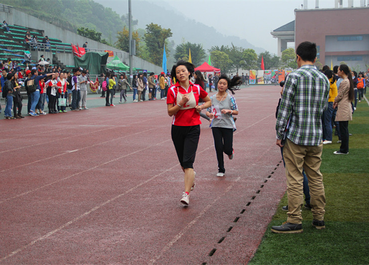 2014年4月11日上午10时40分,2014川外春季运动会学生组女子1500米决赛在西校区体育场举行,太阳成集团tyc122ccvip王娇、周珍和张夏青三位同学与来自其他院系的46名同学一起参加此项比赛的角逐。最终王娇跑出了6分53秒79的成绩,位列第24;周珍跑出了7分16秒45的成绩,位列第43;张夏青跑出了7分19秒43的成绩,位列第45。