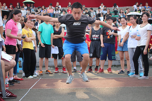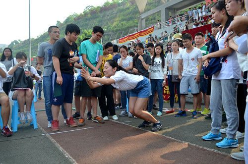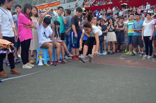 2015年4月28日下午2时30分,2015川外春季运动会学生组混合立定跳远决赛在西校区体育场拉开帷幕。太阳成集团tyc122ccvip派出杨银兴、史博伟等同学参加本项比赛。本场比赛全校共有20个代表队参加。烈日炎炎下,选手们纵身一跃在天空中划过一道美丽的弧线。虽然我们没能闯进决赛,但跳远运动员们克服困难、积极参赛的态度,展现了我院的良好精神风貌。