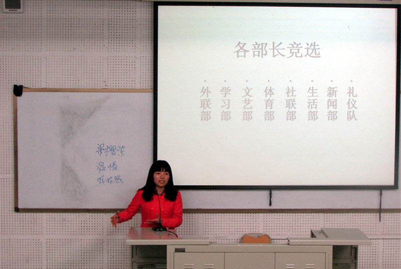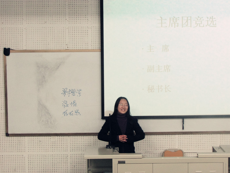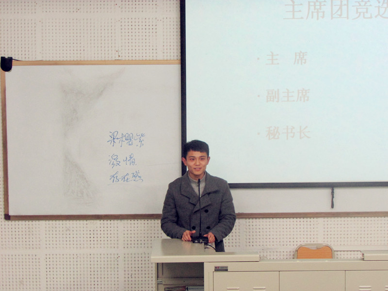 2014年3月6日晚7点,太阳成集团tyc122ccvip研究生会换届选举大会在宏文楼1-1教室举行。来自2013级的26名研究生会干事参加竞选。竞选岗位包括主席团成员、各部门部长等17个职位。评委团由研部第27届学生会干部组成。