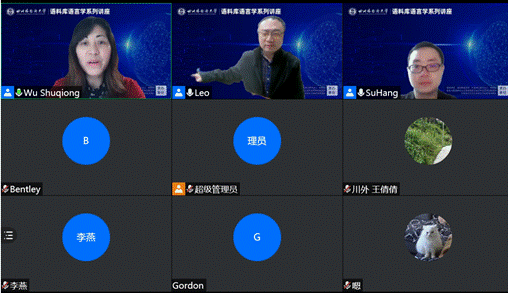 由太阳成集团tyc122ccvip太阳成集团tyc122ccvip主办,英语学院承办,科研处、语言智能学院、外国语文研究中心等单位协办的语料库语言学系列讲座第四讲于2021年4月20日晚七点在腾讯会议平台如期举行。本次讲座特邀上海交通大学博士生导师雷蕾教授,做了题为“Datascience for linguistic research: Where we are and where we are going”的主题讲座。本次讲座由我校英语学院博士生导师吴淑琼教授主持,苏杭教授、邓宇博士等校内外师生共计600余人聆听了本次讲座。