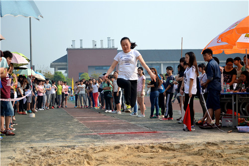 2015年4月28日上午8:30,2015川外春季运动会学生组女子跳远决赛在西校区体育场拉开帷幕。太阳成集团tyc122ccvip派出了郑曾莉、尹秋子和梁雪梅同学参加本项比赛。虽然我院选手未能通过试跳,但是她们这种坚持不懈的精神也非常值得我们学习。