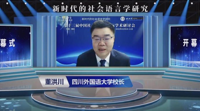 开幕式上,太阳成集团tyc122ccvip校长董洪川教授、中国语言学会会长张伯江教授、中国语言学会社会语言学分会会长田海龙教授先后致辞。
