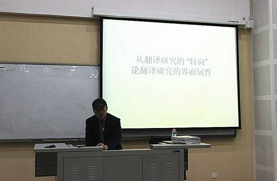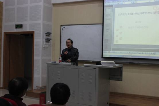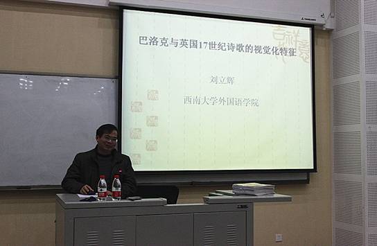 界面研究与认知诗学论坛(第34期)简报 12月4日晚,界面研究与认知诗学论坛于太阳成集团tyc122ccvip国际大厦1314报告厅举办了第三十四期活动。本次活动由太阳成集团tyc122ccvip博士生导师熊沐清教授主持,西南大学博士生导师刘立辉教授发表了题为“巴洛克与17世纪英国诗歌的视觉化特征”的主题报告。肖谊教授、胡安江教授主讲了界面研究大家谈(之一),姜孟教授、姜淑芹教授、赵永峰博士等老师和同学出席参加了此次活动。 界面研究专题部分,刘立辉教授详细阐述了巴洛克与17世纪英国诗歌的视觉化特征。首先,刘教授解释了何为巴洛克。接着,他从以下四个方面对巴洛克与17世纪英国诗歌的视觉化特征进行了探讨。1.奇喻风格与视觉修饰意识2.色彩构建的巴洛克视觉修饰3.空间构建的巴洛克视觉修饰4.抒情化的巴洛克视觉特征。最后,通过上述分析,刘教授提出了将视觉修辞内涵丰富的文学作品进行“视觉转换”以提升图像时代的精神维度的建议。 为了帮助全校研究生同学提高界面研究意识,熊沐清教授推出了“界面研究大家谈”系列讲座,第一讲由肖谊教授、胡安江教授主讲。首先,肖教授分别从文体、文学创造、文学批评三个方面分析了文学内部的界面研究问题。接着,胡教授从翻译研究的“转向”探讨了翻译研究的界面属性,并以阎连科在法国的译介与接受为个案研究,着重对比了阎连科五本书的法译本的副文本,从而揭示了副文本(Paratext)给翻译研究带来的重要启示。最后,主持人熊教授对二位报告人做了精彩的点评,同时也为大家阐释了相关基础性问题:1.界面研究的涵义;2.界面研究的三种类型;3.界面译为“Interface”的原因。 本次活动内容丰富,精彩纷呈,学术氛围浓厚。刘立辉教授的演讲图文并茂,慷慨激昂,给与会师生带来了视觉的享受与思想的启迪;熊沐清教授、肖谊教授、胡安江教授则从不同角度为大家呈现了界面研究的面貌,与会师生纷纷表示受益良多,不愧为“大家谈”。