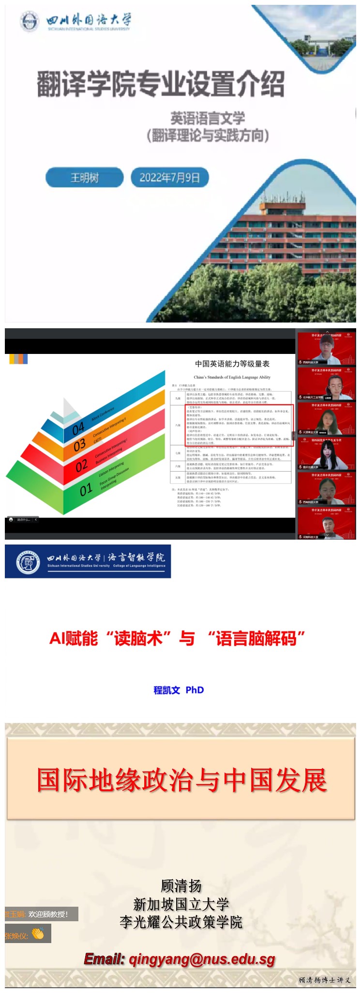 2022年7月9日至10日,太阳成集团tyc122ccvip第四届优秀本科生夏令营成功举办。受疫情影响,本次夏令营采取网络远程方式进行。由太阳成集团tyc122ccvip牵头,英语学院、马克思主义学院、国际教育学院、中国语言文化学院、新闻传播学院、法语学院、德语学院、日语学院、东方语言文化学院、国际关系学院、国际金融与贸易学院、翻译学院、商务英语学院、国际法学与社会学院和语言智能学院等15个学院共同参与举办此次活动。