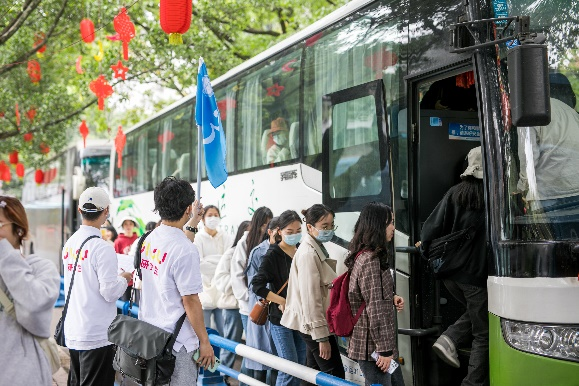 早春时节,青归叶新。6日下午,参加活动的师生分乘四辆大巴驶向抗战时期曾为中共中央南方局活动基地的红岩历史文化景区。
