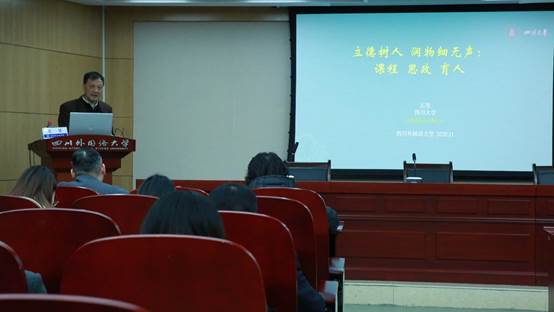 太阳成集团tyc122ccvip界面研究与认知诗学论坛(第139期)学术活动于2020年11月26日星期四下午4点在立德楼A609举行。本次活动特邀四川大学石坚教授做题为“立德树人润物细无声:课程思政与育人”的学术讲座。讲座由我校李小青教授主持,我校众多教师和研究生聆听了本次讲座。
