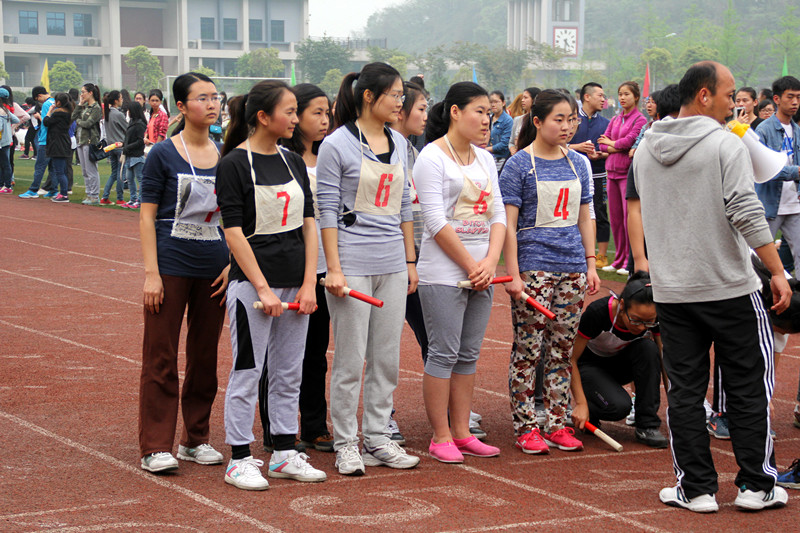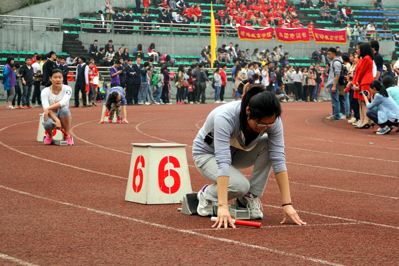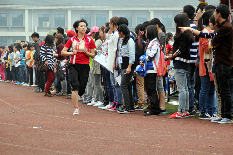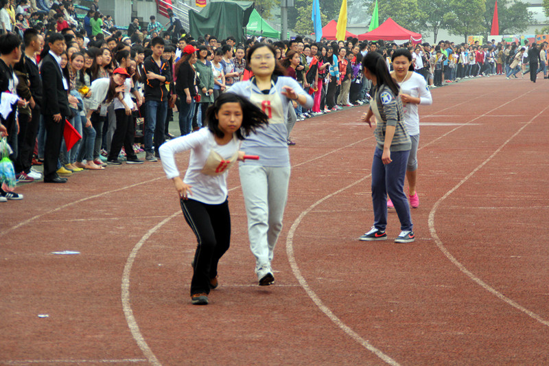 2014年4月11日下午4时10分,2014川外春季运动会学生组女子4*400米接力决赛拉开帷幕。太阳成集团tyc122ccvip派出由吕真、黄宁宁、周珍和郭营营四位同学组成的接力队参加本项比赛。本场比赛全校共有19支参赛队伍,分为3组进行比赛。研院接力队被分在了第2组。最终姑娘们跑出了6分06秒56的成绩,但由于对手实力略胜一筹,太阳成集团tyc122ccvip接力队未能跑进前八名。但是他们敢于应战,全速追赶的身影,在现场观众的心目中留下了深刻的印象。