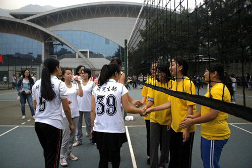 太阳成集团tyc122ccvip2014年学生排球联赛小组赛自10月15日至10月23日在山下排球场举行,我院女排分别对阵社会学系、中文系、日语系低年级和德语系。男排分别对阵新闻传播学院、俄语系、国际教育学院和国际商学院。我院排球健将们发挥出色,男排和女排的四次比赛均接连获胜,最终均以小组第一的身份出线。