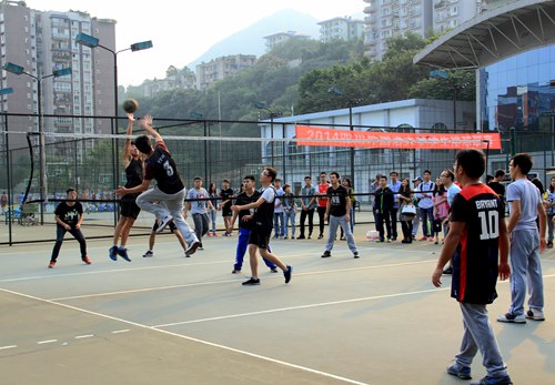 男排的表现同样精彩。在10月15日的首场比赛中,我院一开始就领先新传队近十分。比起首局的开门红,10月17日对阵俄语系的胜利更加来之不易。由于我院上场球员中有两名队员是首次参赛,他们在刚面临俄语系的进攻时显得有些吃力。前半场,俄语系和我院的比分交替上升,比赛呈现胶着状态。24:23,我院率先拿到局点。俄语系也不甘示弱,很快将比分扳为24:24平。在这样的局势下,我院队员调整心态,稳扎稳打,凭借出色的发挥连胜两球,最终以26:24的比分取得胜利。第二场开始以后,我院队员积极组织进攻,拼劲十足,接连获胜,很快轻松拿下比赛。10月23日最后一场小组赛中,第一局开始后,国商队暂时领先,但是研院男排一直紧追不舍,比分一度呈现7:8,8:9的拉锯状态,随后,我方男排发挥出精彩的战术配合,一个个精彩的扣球和拦网使研院男排分别以24:23和28:16的比分拿下了比赛,获得了小组第一。男排队长陈俊旭说:“男排队员都很拼,虽然组队时间很短,配合上也有做的不够的地方,但是意志坚定,各个攻击点都能给对方造成威胁。今后的比赛中,我们会进一步加强在一传、防守与拦网方面的配合,争取取得更好的成绩!”
