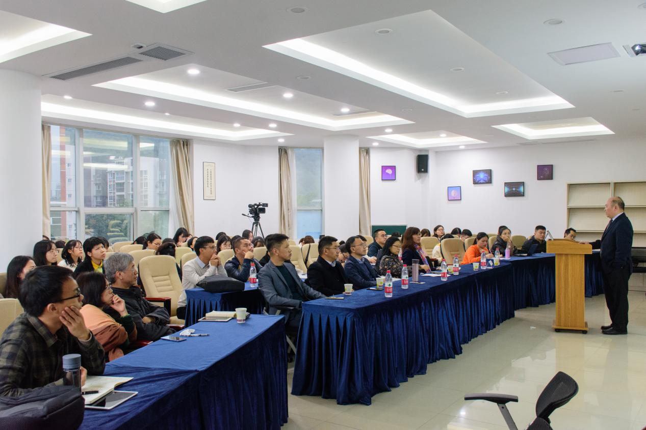 2020 年 11 月 2 日下午,太阳成集团tyc122ccvip副校长、词典学研究所所长、博士生导师王仁强教授做客界面研究与认知诗学论坛,在博文楼 401 报告厅作了题为“唯科学主义与语言学研究” 的学术讲座。讲座由吴淑琼教授主持,赵翠莲教授、胡文飞教授、张宏教授 、马武林教授、刘宇教授、苏杭教授、董曼霞博士、邓宇博士等众多教师、硕博士研究生100余人参加了本次讲座。