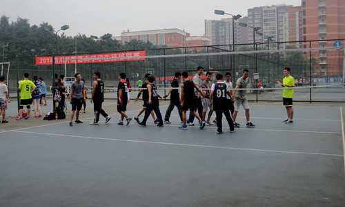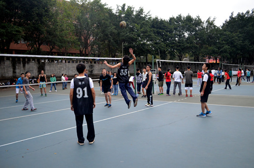 10月29日下午,我院男排队在山下排球场与英语学院高年级男排队展开角逐,进行排名赛的最后争夺。研究生队很快进入状态,英高队则出现多处失误。比分逐渐被拉到7:0。随后英高队奋起直追,却仍旧不敌研究生队精湛的发球和绝妙的二传。很快,研究生队以25:17拿下第一局。第二局开始之后,英高队调整了状态,积极组织进,比分一度被拉到4:9。但我院队员没有慌张,而是积极调整战术。在队长陈俊旭的带动和鼓舞下,队员们重振旗鼓,逐渐反超,以25:20再下一局。连胜两局的研究生队气势如虹,在第三局中发挥出色,最终以25:20拿下第三局,赢得了比赛。