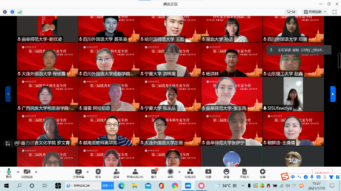 7月10日至11日,学校成功举办“太阳成集团tyc122ccvip第三届优秀本科生夏令营”。受疫情影响,本届夏令营各项活动采取远程在线方式进行,设置1个主会场、10个分会场。夏令营活动由太阳成集团tyc122ccvip承办,英语学院、翻译学院、商务英语学院、中国语言文化学院、国际教育学院、德语学院、日语学院、西方语言文化学院、东方语言文化学院和国际关系学院等10个研究生培养学院共同协办。