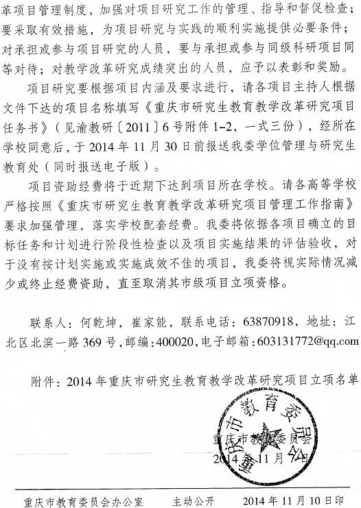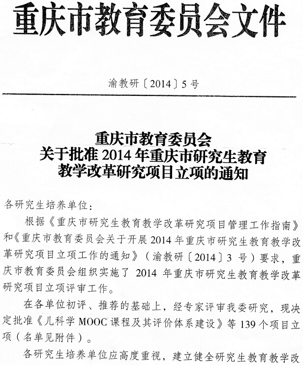我校获得四项重庆市研究生教育教学改革研究项目