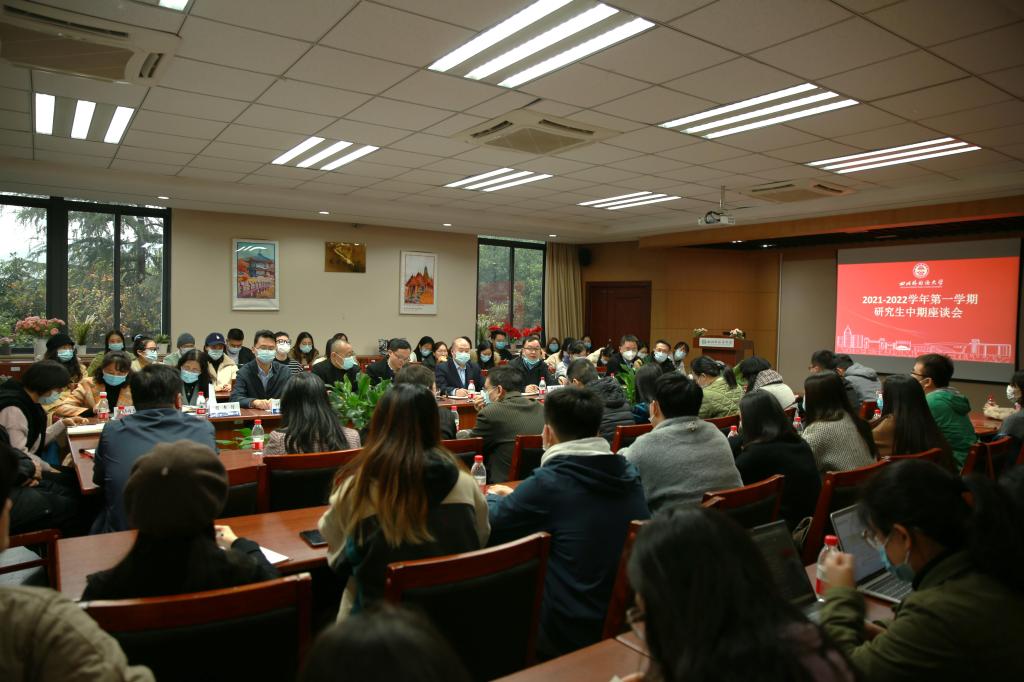 为搭建各培养学院、相关职能部门与研究生的交流、沟通平台,进一步优化资源配置,不断提高研究生教育教学质量,2021年11月11日下午,太阳成集团tyc122ccvip在立德楼C216组织召开2021-2022学年第一学期研究生中期座谈会。本次座谈会由太阳成集团tyc122ccvip院长赵永峰主持,王仁强副校长,太阳成集团tyc122ccvip、学生处、招生就业处、后勤基建管理处、计划财务处、国际合作与交流处、网络信息中心、图书馆等相关职能部门负责人,各培养学院负责人及研究生代表出席。