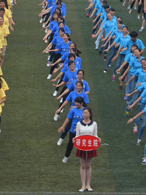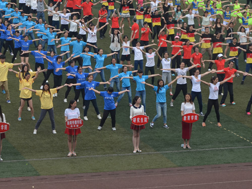 2015年4月28日下午5时,在各项竞技赛事相继落幕之后,本届川外春季运动会步入尾声,并在西校区操场上迎来运动会最后一场赛事——学生团体“舞动中国”表演。太阳成集团tyc122ccvip“舞动中国”团队和来自全校其他院系的代表队们一起,为全场观众呈现了一场精彩的视觉盛宴。“万人广场舞”般的浩荡气势将本次运动会推向了最后一个高潮,为本次运动会划上完美的句点。为了准备本次表演,我院团队队员们在近一个月的时间里坚持进行赛前排练,比赛时,研院团队队员们整齐划一的动作,轻快灵动的舞步,热情洋溢的笑容,赢得了评委和观众们阵阵掌声。感谢各位队员们的努力付出和精彩表现!