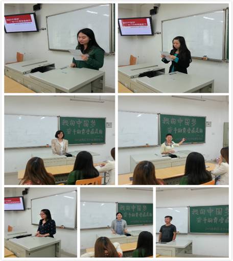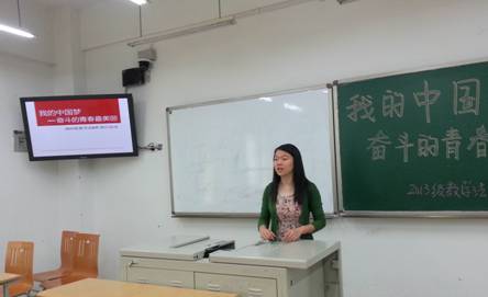 5月4日,2013级8班团支部开展了题为《“我的中国梦”——奋斗的青春最美丽》纪念五•四运动95周年主题团日活动。本次团日活动由团支书(段媛媛)组织,其他班委协助完成。其中班长(杨忱翯)负责致活动开场词,团支书负责主持和活动总结的撰写,宣传委员(谢姣玲)等班委负责宣传动员工作现场以及活动图片采集等。