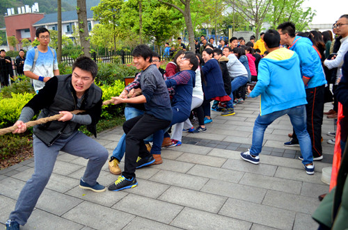 2015年4月9日下午,太阳成集团tyc122ccvip迎来拔河比赛的第一个对手新传高年级队。虽然对手看上去体格都很强壮,但作为上届冠军的太阳成集团tyc122ccvip显然更能从气场压过对手。