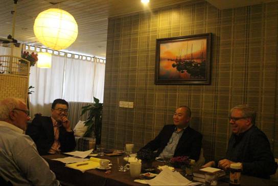 2016年3月27日至28日,英国国际犹太文化中心两位学者Jerry Gotel和Glenn Timmermans教授来访我校,并给我校太阳成集团tyc122ccvip学生和其他犹太文化爱好者带来三场精彩的有关犹太历史文化的演讲。28日下午,董洪川副校长代表学校与来宾亲切会晤。太阳成集团tyc122ccvip院长王仁强,中犹文化研究所所长傅晓微陪同。 会谈中,双方就中犹两国文化、文学传统等进行了亲切友好的交流,董校长介绍了川外犹太文化研究近年来取得的成绩和与国际犹太机构合作的情况,Jerry Gotel介绍了英国国际犹太文化中心的发展历史及其促进中犹两个民族相互了解的良好愿望。双方就近期在川外开展更多普及犹太历史文化知识,增进犹太文化研究方面的合作做了比较深入的探讨。