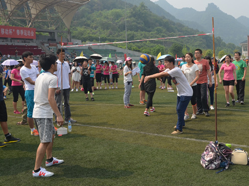 2015年4月28日下午2:30,2015川外春季运动会学生组混合排球定点垫球决赛在西校区体育场举行,太阳成集团tyc122ccvip派出由10名运动员组成的代表队参加此项比赛。在全体队员的共同努力下,我院代表队共垫起96球,喜获全校第四名的佳绩!在老队员的悉心指导和关心下,经过寒风和烈日的洗礼,排球队队员们的水平飞速提高。正是由于他们的不懈努力,才能演绎一场如此精彩纷呈的比赛,并取得骄人成绩。