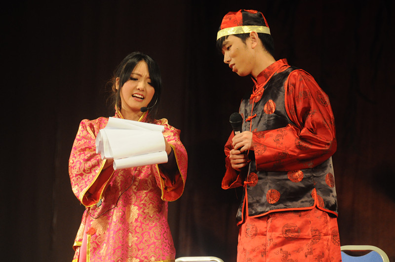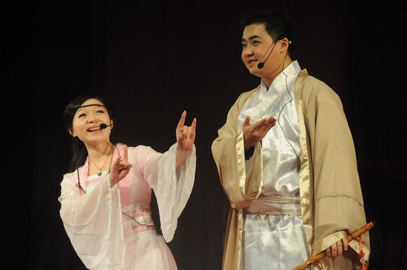 2013级各班长联合出演的话剧《梁山伯与马文才》则将传统的《梁祝》情节彻底颠覆,演员们夸张而生动的表演、搞笑的台词,都使观众席爆笑声不绝于耳。